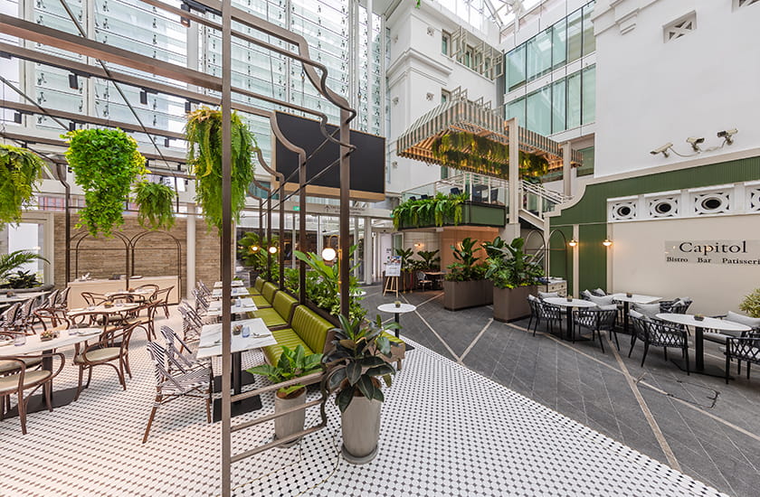 Capitol Bistro. Bar. Patisserie by DP Design is a winner in the Interior Design, Restaurant – Brasserie category, extending Singapore’s ‘City in Nature’ narrative into a space anchored in the heritage setting of The Capitol Kempinski Hotel. An additions and alteration project, it has been re-envisioned as a tropical oasis within the conserved Capitol Building in Singapore. The restaurant harnesses generous daylighting and spatial volume to deliver a holistic dining experience while creating a visually porous, spatially efficient and biophilic environment. Three distinct zones—bistro, bar and patisserie—are thoughtfully integrated into the spatial layout, designed for smooth movement and maximum interaction among its patrons.